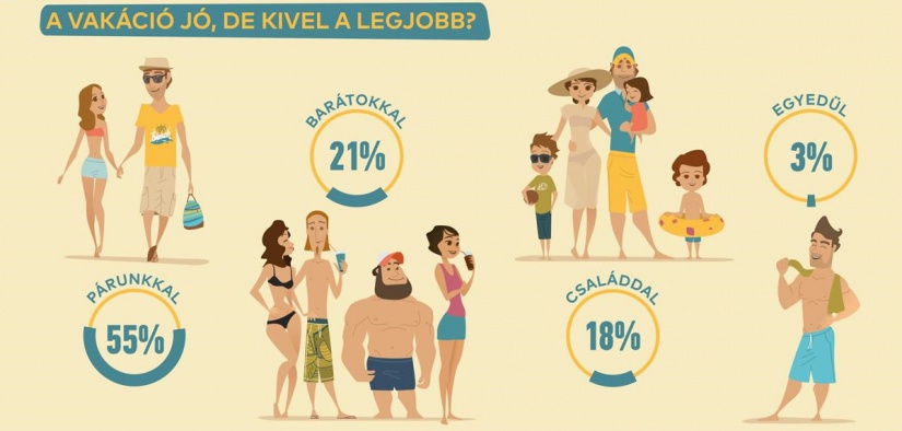 A válaszadók többsége az aktuális párjával szeret a leginkább nyaralni, de sokan a baráti társasággal és a családdal is szívesen szereznek közös nyári élményeket. A Lovebox.hu felmérése szerint a párok többsége (72%) többet szeretkezik a nyaralás alatt, de közel ötödüknél a veszekedés sem marad el, legalább egyszer összezördülnek ilyenkor is. A legtöbb szexre az egzotikus helyeket, illetve az aktív pihenést kedvelőknél van esély.