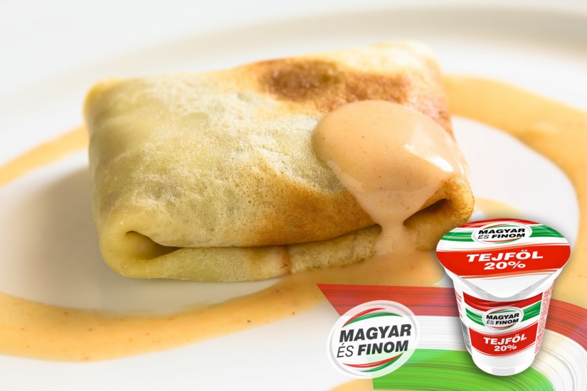 6. Megtöltjük őket darálthússal, majd feltekerjük. Tűzálló edényben egymás mellé helyezzük a palacsintákat, majd leöntjük a tejfölös szafttal és előmelegített sütőben (175 Celsius fok), tíz percig sütjük.
