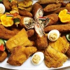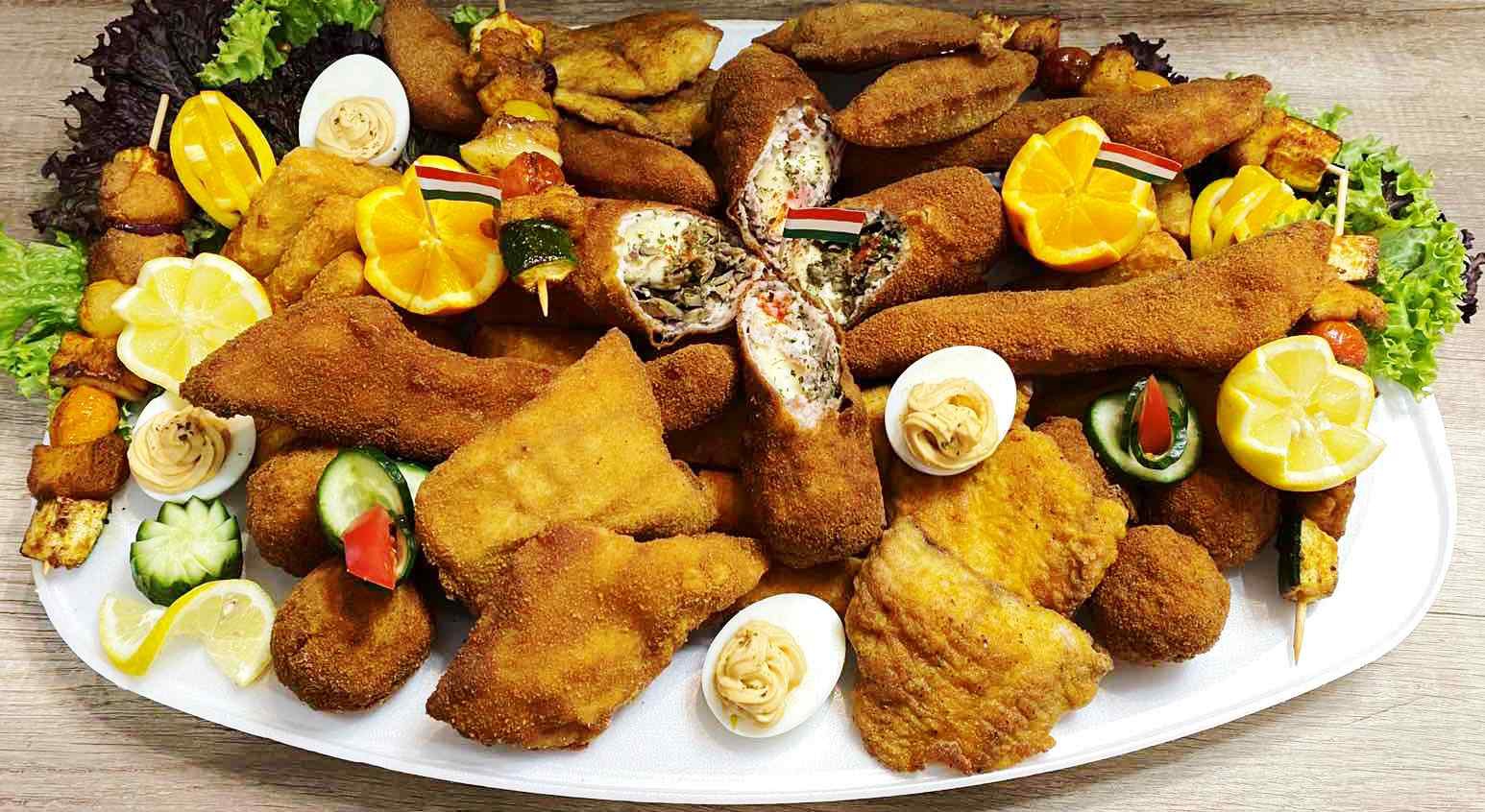 Húsvéti tálunk tartalma 5 személyre 10.000 Ft-ért: 4db harcsa saslik, 4 db rántott harcsa, 4 db roston sült harcsa, ½ adag sajttal-sonkával töltött harcsa, ½ adag sajttal-gombával töltött harcsa, 2 db rántott ponty patkó, 4 db lazackrémmel töltött tojás, 15 db krokett, 15 db röszti, 5 db rántott rizsgolyó, 3 adag fokhagymás tejföl, 2 adag tartármártás. Ezen kívül természetesen rendelhető friss harcsa és vegyes halászlé adagos, illetve nagyobb, literes kiszerelésben is.