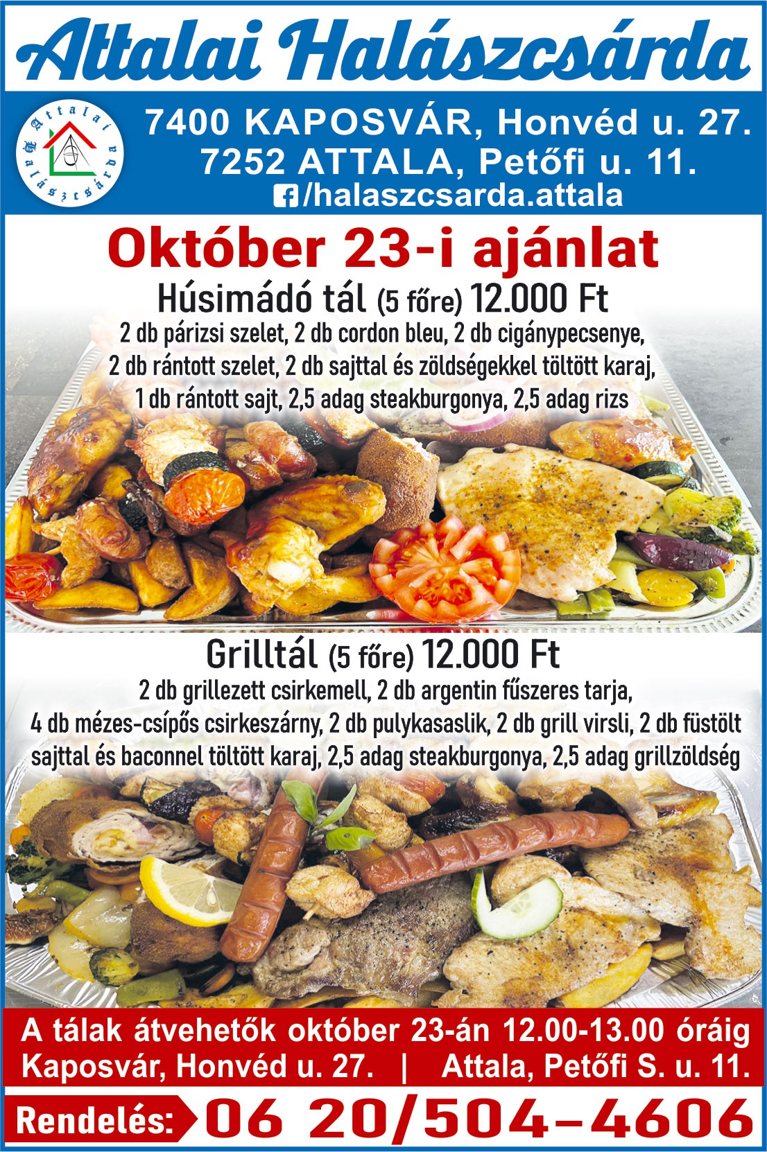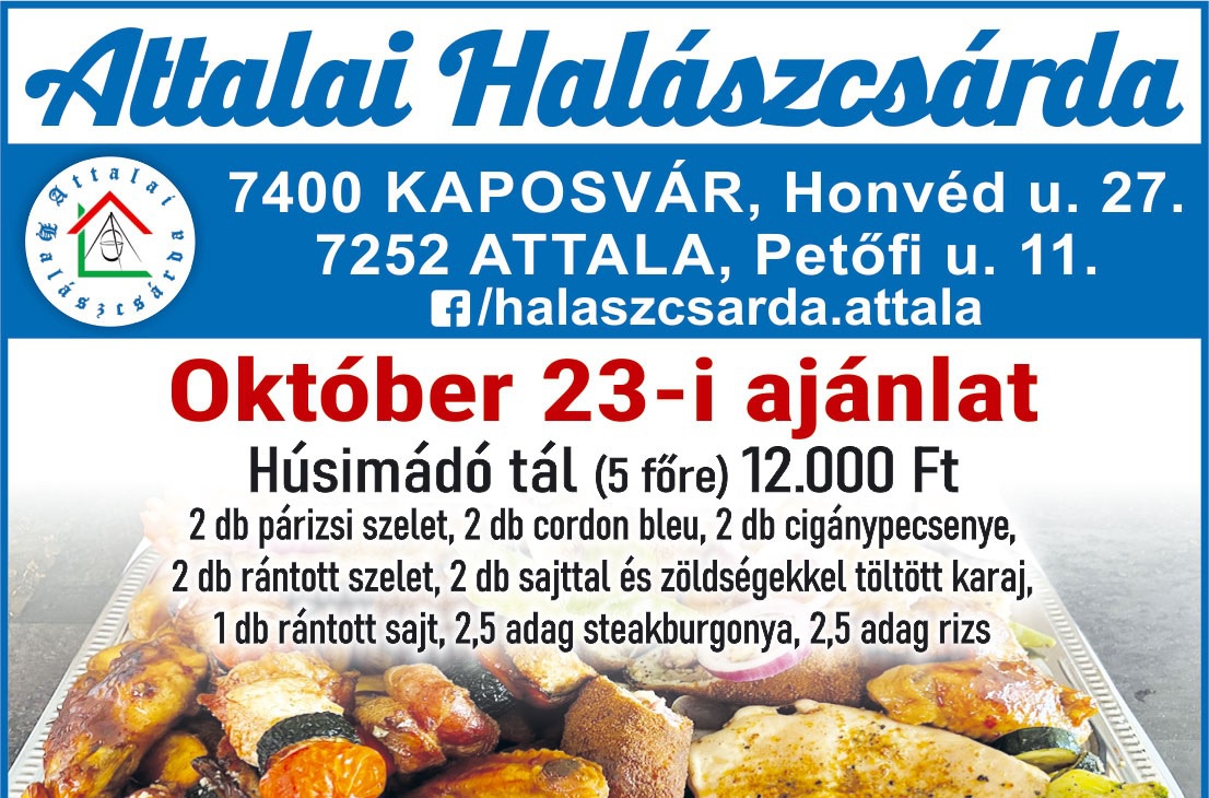 A sokak által kedvelt Attalai Halászcsárda Átvételi Pont már új helyszínen, Kaposváron, a Honvéd utca 27-ben várja vásárlóit.