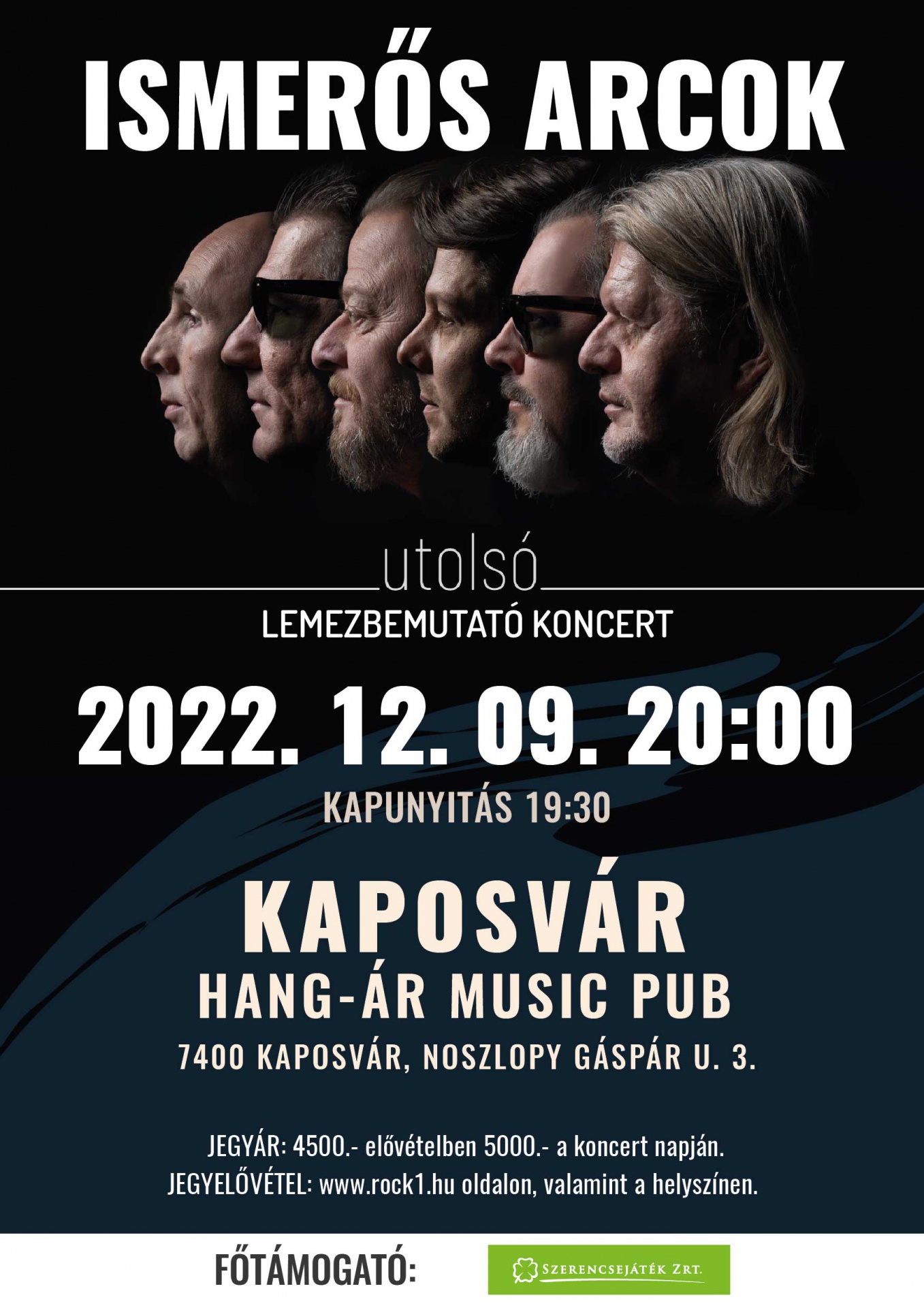 | Jegyek rendelhetőek: - online https://jegy.rock1.hu/ismeros-arcok-koncert_kaposvar_20221209 - papír alapon: Hang-Ár Music Pub (Kaposvár, Noszlopy Gáspár u.3.) A koncert főtámogatója a SZERENCSEJÁTÉK ZRT. |