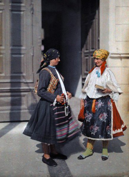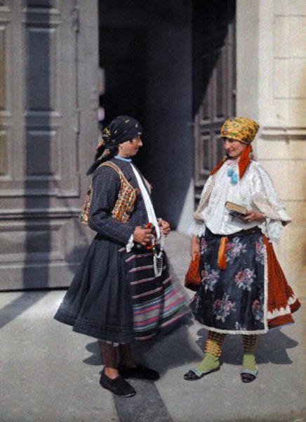 1930, népviseletbe öltözött asszonyok látogatnak meg egy férfit a faluban