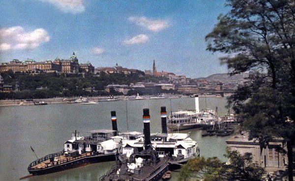 1930, A dunai közlekedés látképe háttérben a Királyi Palotával