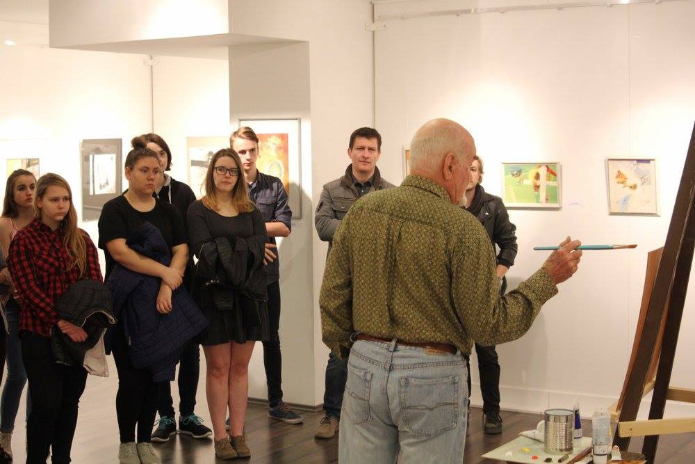 A művész rövid tárlatvezetése után a Zichy Mihály Iparművészeti Szakgimnázium 9. osztályos tanulóinak tartott festészeti bemutatót. Mesélt az alkotási folyamatokról, a technikákról és válaszolt a feltett kérdésekre.