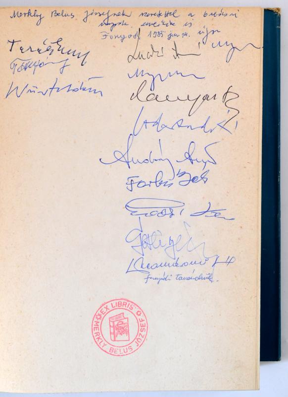 – A jó állapotban lévő kötet 3500 példányban jelent meg, de eddig nem ismertünk ilyen gazdag ajándékozási sorokkal ellátott példányt – mondta lapunknak Csonka Krisztián, a Darabanth Aukciósház cégvezetője. – A kötet szerzői (Laczkó András, Magyar Kálmán, Kanyar József, Csutorás László, Andrássy Antal, Erdősi Ferenc, Gertig Béla, Takáts Gyula, Tóth József), valamint Farkas Béla (festő-műszaki szerkesztő) által dedikált, mégpedig a neves nagykanizsai irodalmár-gyűjtőnek, Merkly-Belus Józsefnek, akinek szép pecsételt vignettája is benne van. Érdekessége, hogy Komárom József fonyódi tanácselnök mellett a Bélatelepen alkotó Würtz Ádám (1927-1994) grafikus még azt is odaírta: Fonyód-rajongó.