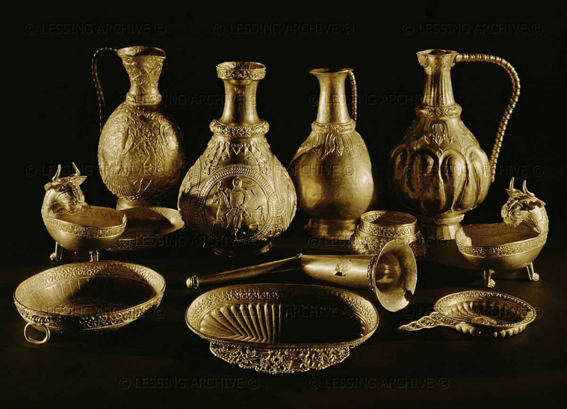 A nagyszentmiklósi aranykincs „életét” amúgy a pletyka mentette meg. Ha a falu nem „suttog”, ma talán meg sem lenne a legnagyobb jelentőségű magyar régészeti aranylelet. Egy szerb gazda ásta elő jó kétszázhúsz éve, 1799 júliusában a Temes megyei Nagyszentmiklós határában lévő szőlőjében. Elkezdődött a széthordás, az arany tördelése, beolvasztása, mígnem az elöljárók fülébe jutott, hogy mit lelt a földben a parasztember. A készlet eredetileg ennél bővebb volt, de több eleme eltűnt, beolvasztották, még a Bécsi Nemzeti Múzeumba kerülése során is loptak el belőle. Végül a gazda kártérítést kapott, a pénzből házat épített. Gondoljunk csak bele, ma az arany grammja 16 000 forint (ezt szorozzuk be 10 000 grammal), ám egy ilyen történelmi ékszerért ennek akár a százszorosát is megadják a gyűjtők a feketepiacon. Akkoriban még nem létezett a Magyar Nemzeti Múzeum, és hazánk közjogi helyzete miatt vitték Bécsbe az aranyedényeket. Trianon után pedig Nagyszentmiklóst Romániának ítélték, így a műkincsek – ahogyan azt szélsőséges román történészek követelték – akár csúfondárosan Bukarestben is kiköthettek volna…