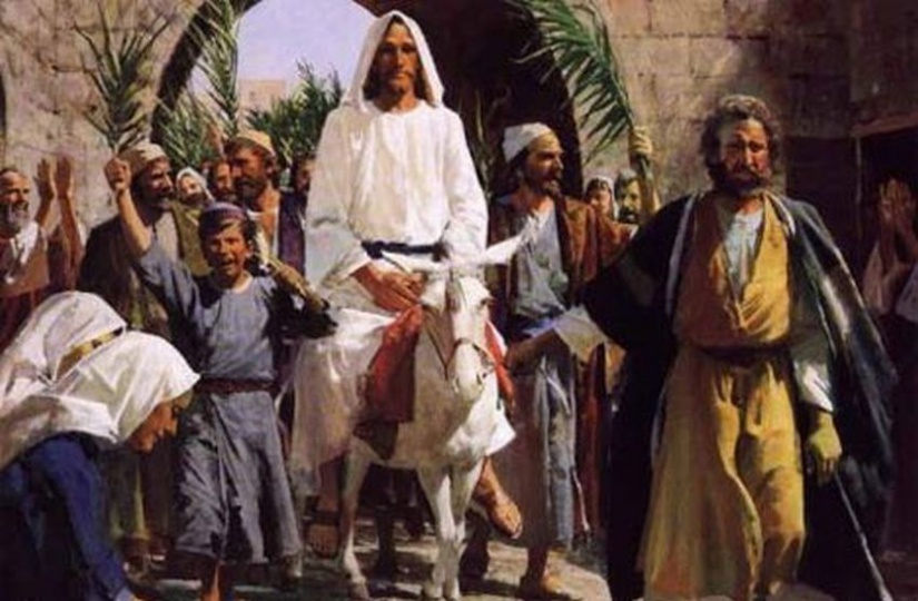 A római egyház a húsvétot megelőző vasárnapot dominica palmarumnak, azaz pálmavasárnapnak nevezi, nálunk virágvasárnap a közismert neve. Már az első keresztények is megemlékeztek Krisztus jeruzsálemi bevonulásáról: ezen a vasárnapon összegyűltek az Olajfák hegyén, itt imádkoztak, majd pálma- és olajfaágakkal kezükben énekszóval Jeruzsálembe vonultak.