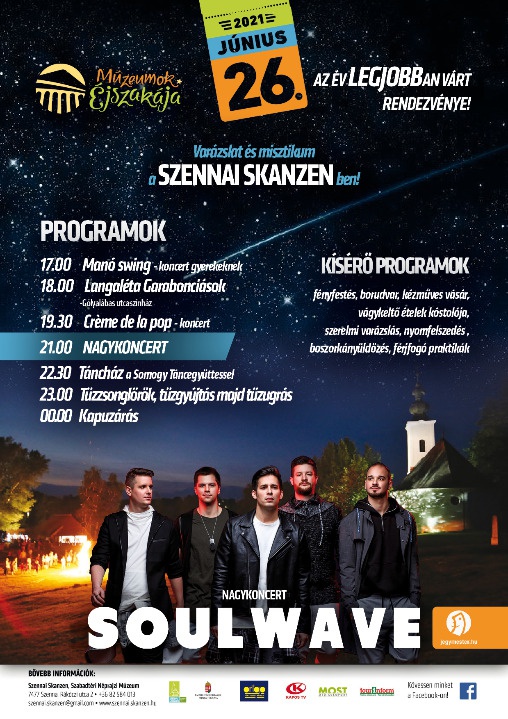 A jó hangulatról a Manó Swing, a Crème de la pop és a Soulwave koncertje gondoskodik. Az estét Szent Iván-éji tűzugrás és táncház zárja.