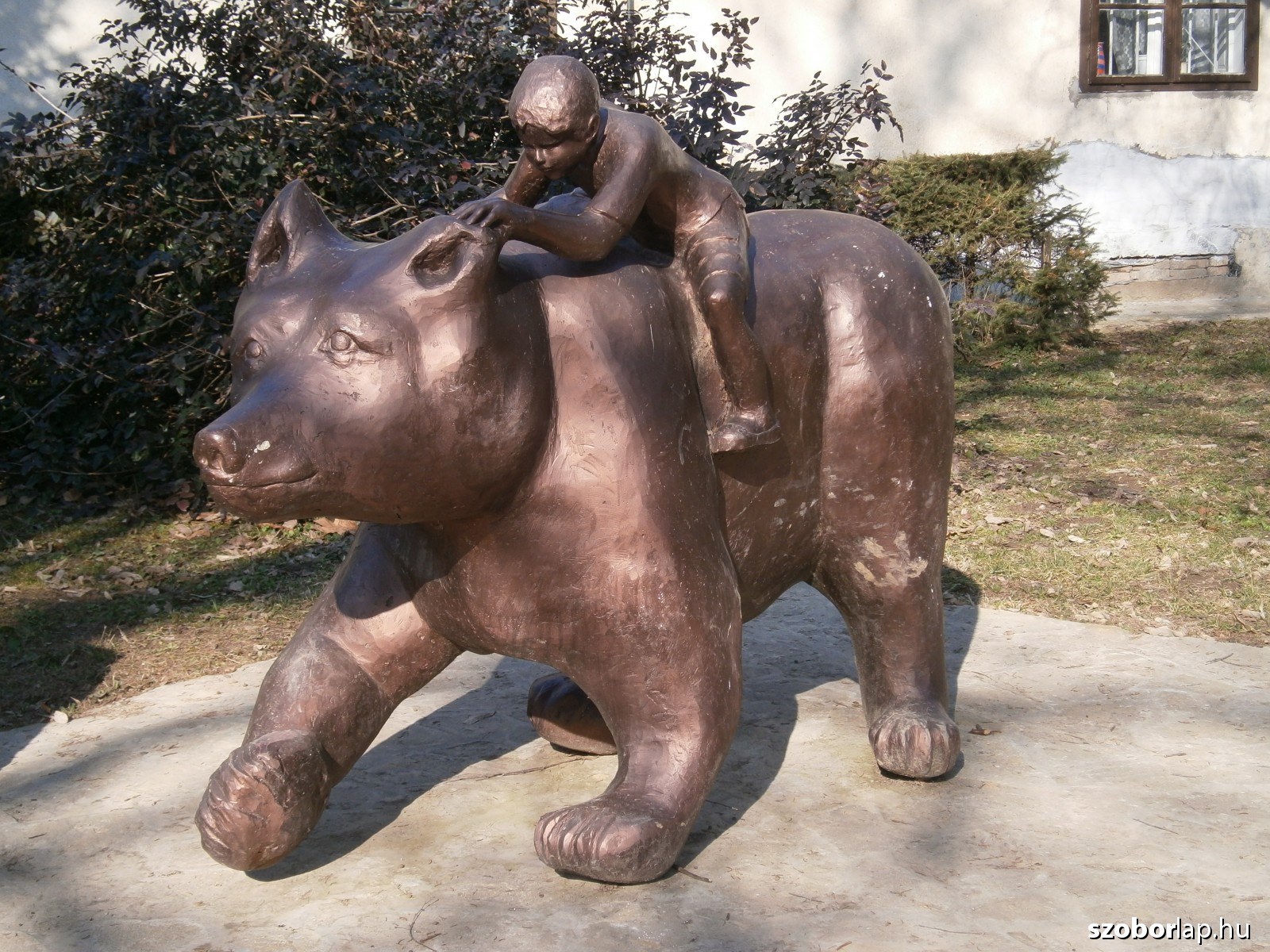 Putnoki Sándor Medve gyermekkel című alkotása egy ballagó nőstény barnamedvét és a hátán ülő kisfiút ábrázolja. Egy toponári legendából inspirálódott az alkotás, melynek több eredete is van. Az egyik verzió szerint a Festetics család nyári rezidenciáján, vagyis a mai iskola kertjében számos medvebocs élt, egy napon azonban rejtélyes módon elszabadultak, és elszéledtek a faluban. A nemesek a köznéphez fordultak segítségért az állatok befogására, amit nem kis erőfeszítéssel sikerült csak sikeresen végrehajtaniuk. Az anekdota szerint az egyik bocs nem máshova, mint a templom tornyába bújt üldözői elől. A másik, máig élő változat szerint az épp arra járó vándorcirkuszosok medvéi szabadultak el hasonló módon. Mások úgy mesélik a történetet, hogy nem több kicsi mackó szabadult el, hanem egy nagy, amit csak a Bálintka névre hallgató kisfiúnak volt mersze hazakormányozni, mégpedig a hátára ülve és a fülénél fogva. Putnoki Sándor kompozíciójában ezt a továbbköltött verziót jelenítette meg.