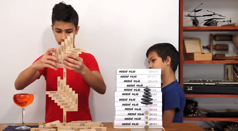 Ráadásul az egész mögött ott van Ledő Attila, a fiúk apukája, aki fizikatanár. A profi aláfestő zenével megtámogatott videóból a végén derül ki, hogy valójában ez egy újévi köszöntő. Ám mire odáig eljutunk, számtalan kísérletet láthatunk az egyensúlyról, elejétől a végéig mindennapi, az átlagos háztartásban is meglévő tárgyakkal bemutatva.