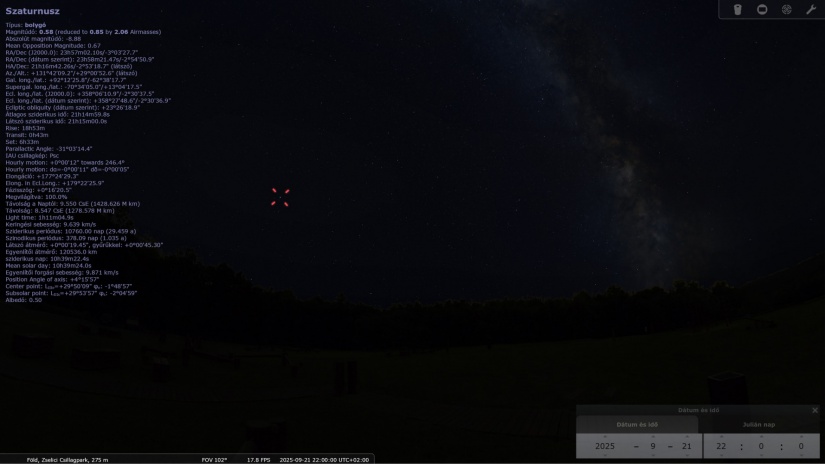 2025. szeptember 21. – Szaturnusz szembenállásban