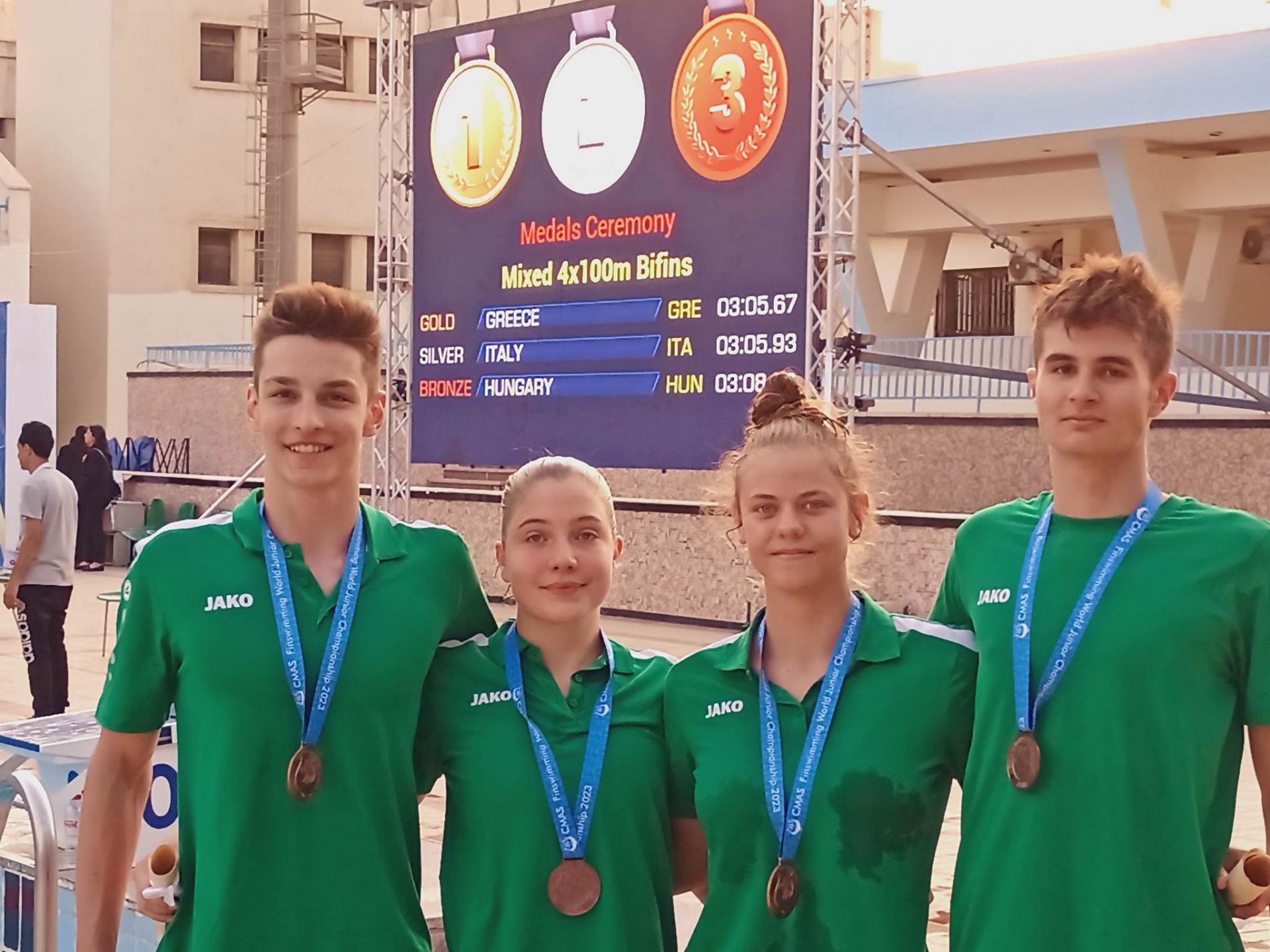 A kairói világversenyen korábban egyéniben Wórum Regő a 100 méteres uszonyos gyors számban volt bronzrémes, majd a 4x100 méteres gyorsváltó tagjaként is harmadikként zárt Mozsárik Leventével, Szili Ágnessel és Varnyu Annával kiegészülve. Varnyu Anna egyéniben is szerzett érmet, miután a 200 uszonyos gyors döntőjében lett harmadik.