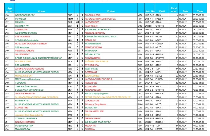 A 13 éveseknél az orosz Burevestnik és a román Luceafarul Oradea eddig minden mérkőzését hozta, a 14 évesek között viszont csoportja élén áll a Rákóczi. A 15 éveseknél a horvátok és a makedónok, egy korcsoporttal feljebb pedig a chileiek teljesítettek eddig a legjobban. A 17 évesek között a komárnóiak egy hétcsapatos csoport élén tanyáznak, az olasz Brescia pedig hat együttes közül a legjobb három nap után. A legidősebbek között Toponár, Kiskorpád, Nagybajom a sorrend az élen.