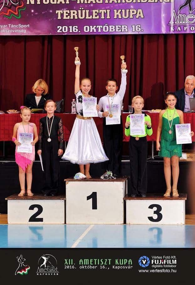 A délutáni Ametiszt Kupán: Berkes Csanád-Ferstek Nóra a San Dance Studio-Ametiszt TSE vegyes párosa Jun.II."E" kategóriában bronzérmet szerzett, Jun.II."D" Latin osztályban az első versenyükön a 4. helyet szerezték meg.