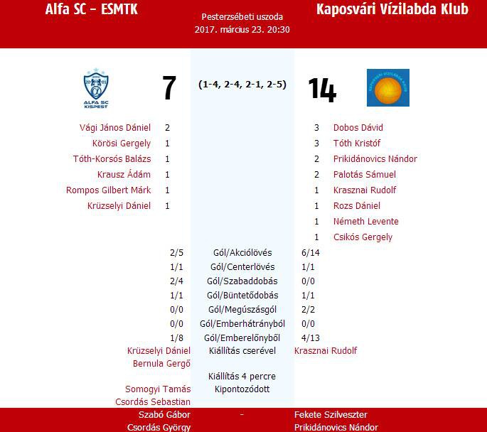 „Jól játszottunk, küzdelmes meccs volt. Az elején jól kezdtünk és sikerült is elmennünk, de aztán felhúztuk magunkra az ellenfelet, így a 9-3-ból hamarosan 9-6 lett. Aztán a vége felé újra összekaptuk magunkat és magabiztos győzelmet arattunk.”