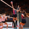 A második szettet már valamelyest jobban kezdte Herczeg Gyöngyi csapata, sokáig csak 2-3 pont volt a különbség. A szett közepén rendezte sorait Zarka Péter, a feljavuló játék pedig már 2:0-ás hazai vezetést eredményezett.