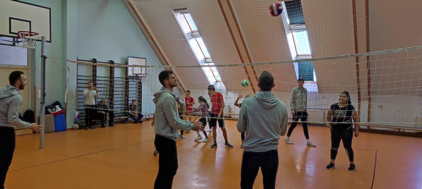 A férfi röplabdacsapat tagjai egy edzésen lepték meg a fiatalokat.