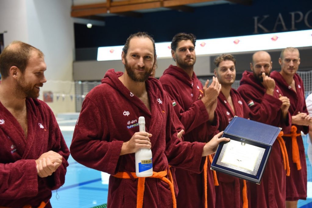 Ifjabb Berta Józsefnek és Vindisch Ferencnek szólt a taps a Kaposvár – Eger OB I-es vízilabda mérkőzés előtt. Előbbi 300. mérkőzését játszotta szombaton, utóbbi pedig egy hete az UVSE ellen szállt medencébe 650. alkalommal.