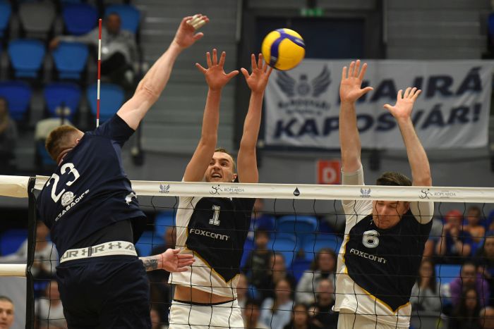 | Fino Kaposvár: Magyar 3, Hubicska 15, Novoselov 9, Baróti 27, Bögöly 13, Lescay 8. Csere: Bozóki (liberó), Zarka, Iván B, Tóth G. Vezetőedző: Szlobodan Prakljacsics. MÁV Előre Foxconn: Koci 22, Tomanóczy 11, Pesti 18, Boa 11, Eke 11, Szabó V. 8. Csere: Takács (liberó). Vezetőedző: Omar Pelillo. A párharc állása: 2-1 a Fino Kaposvárnak. |
