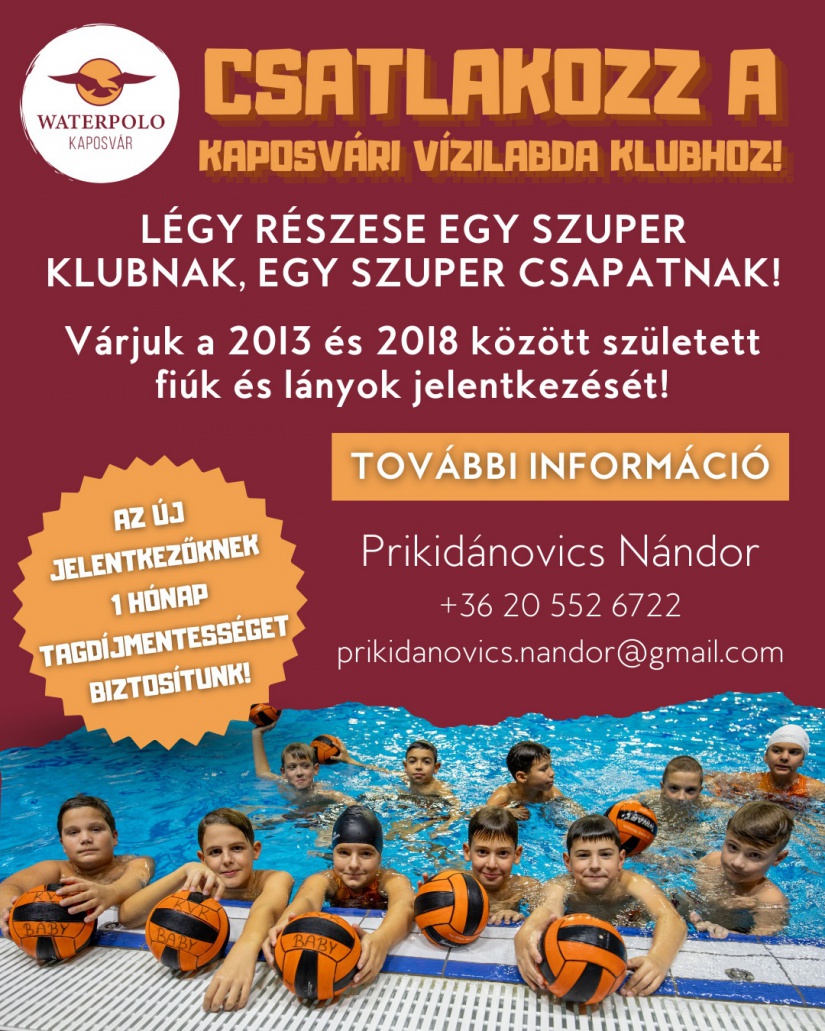 A Kaposvári Vízilabda Klub új tagokat toboroz a legfiatalabb korosztályból.