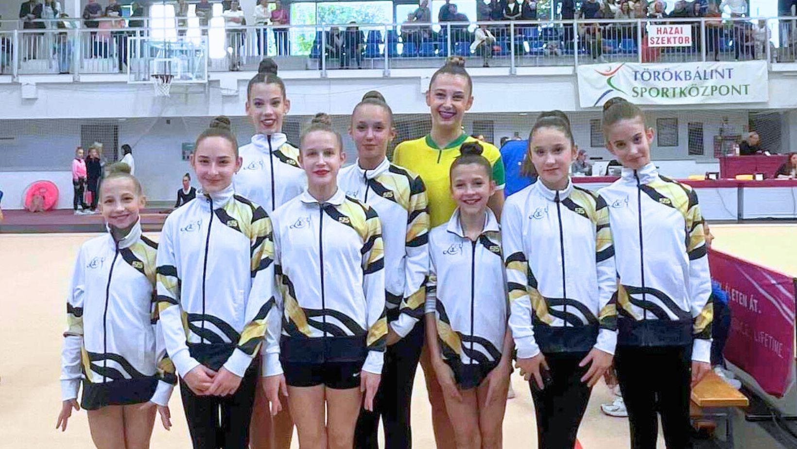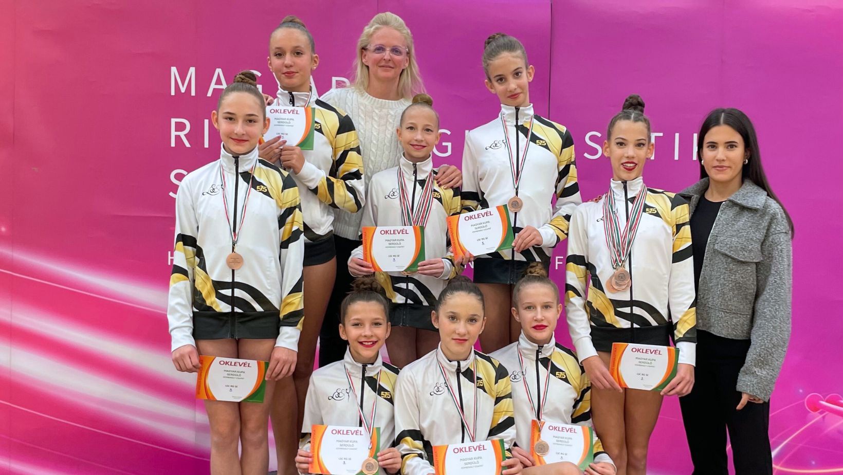 A serdülő együttes kéziszer csapat – Bene Laura, Iberpaker Kata, Szabó Nadin, Ütő Izabella, Varga Emma és Liska Emma – látványos, magabiztos produkcióval a dobogó harmadik fokára állhatott fel az 5 labdás koreográfiák versenyében.