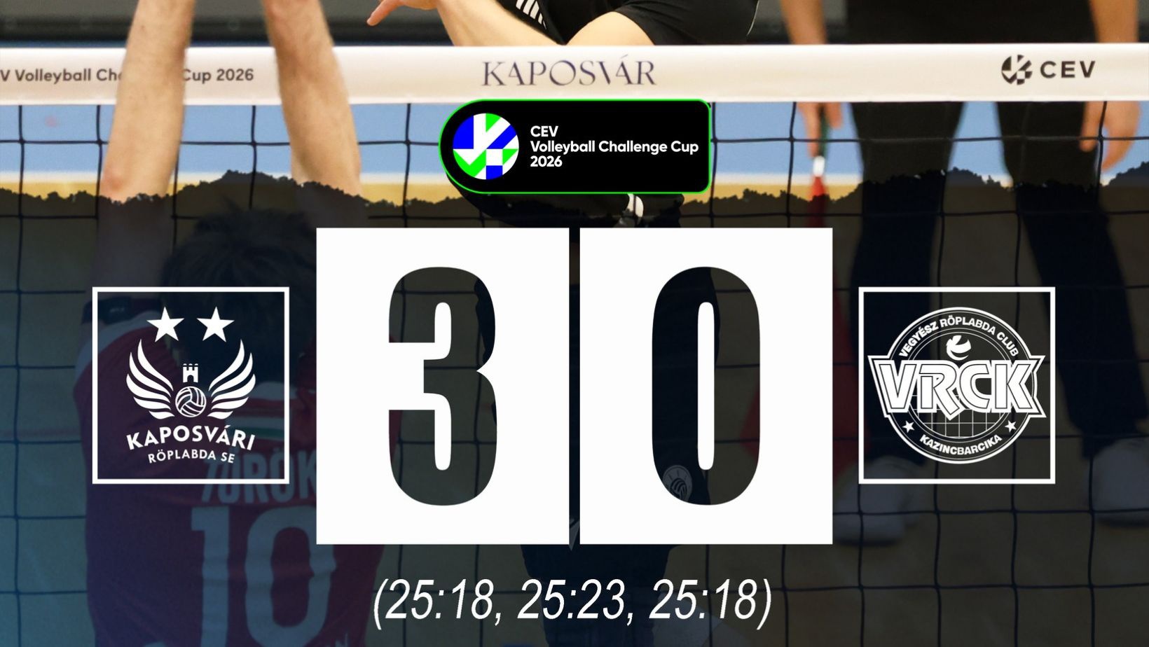A Fino Kaposvár magabiztos játékkal, kettős győzelemmel vívta ki a továbbjutást a CEV Challenge Kupa legjobb 32 csapata közé. Az első találkozó után a hazai visszavágón is fölényesen, 3:0-ra győzték le a Vegyész RC Kazincbarcika együttesét, így összesítésben egy pillanatra sem forgott veszélyben a kaposváriak továbbjutása.
