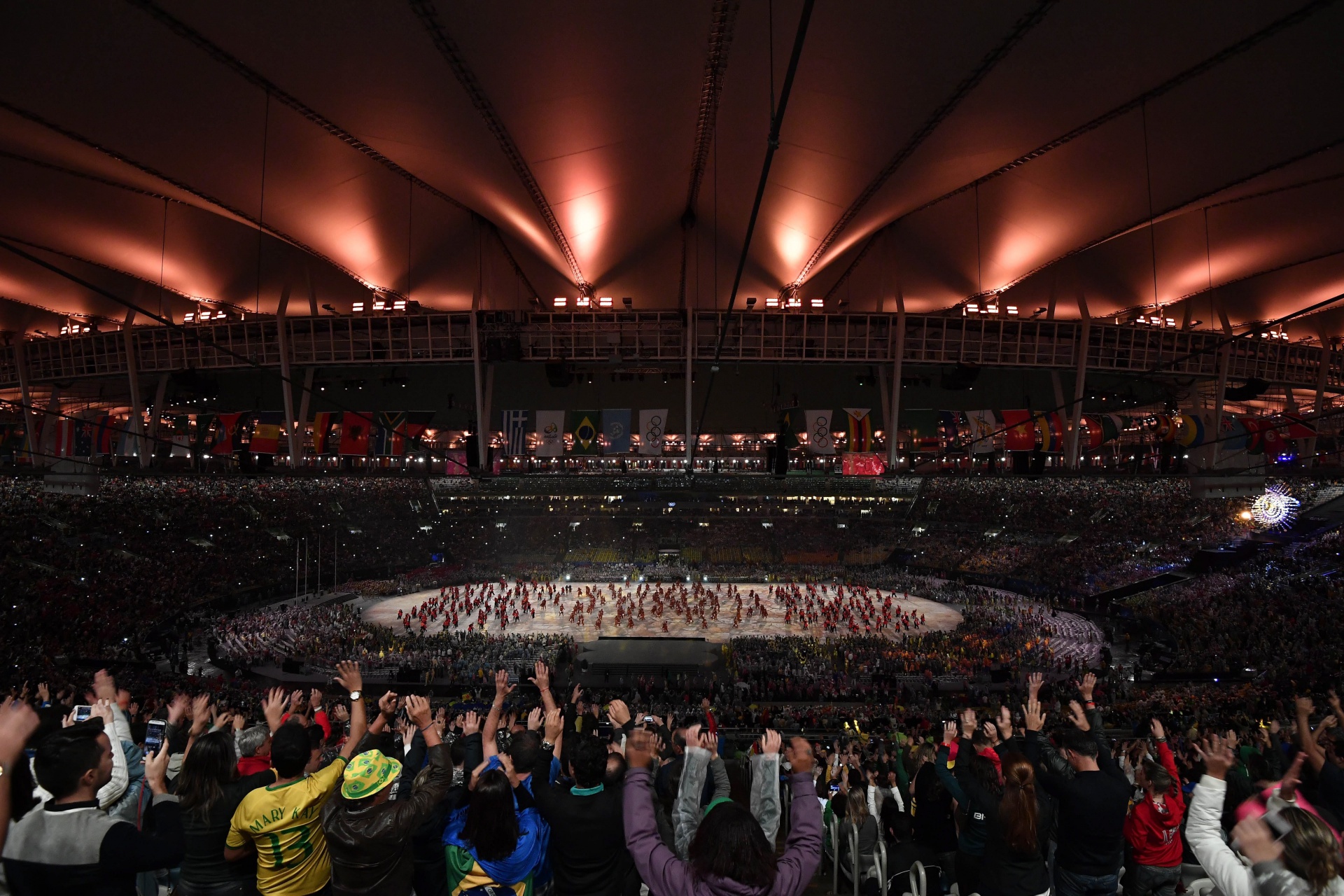 A brazil himnuszt - az ország lobogójának felvonása alatt - 27 gyerek énekelte el szimbolizálva Brazília 26 szövetségi államát és egy szövetségi kerületét.