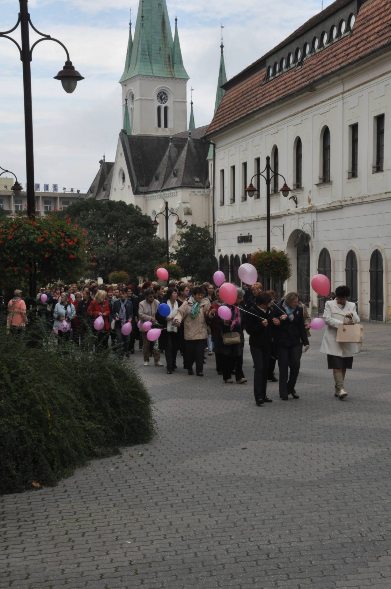 Több százan sétáltak pénteken kora délután rózsaszín lufival a kezükben a Kossuth térről a Kaposi Mór Oktató Kórházig, hogy így hívják fel a figyelmet a mellrák elleni küzdelemre.