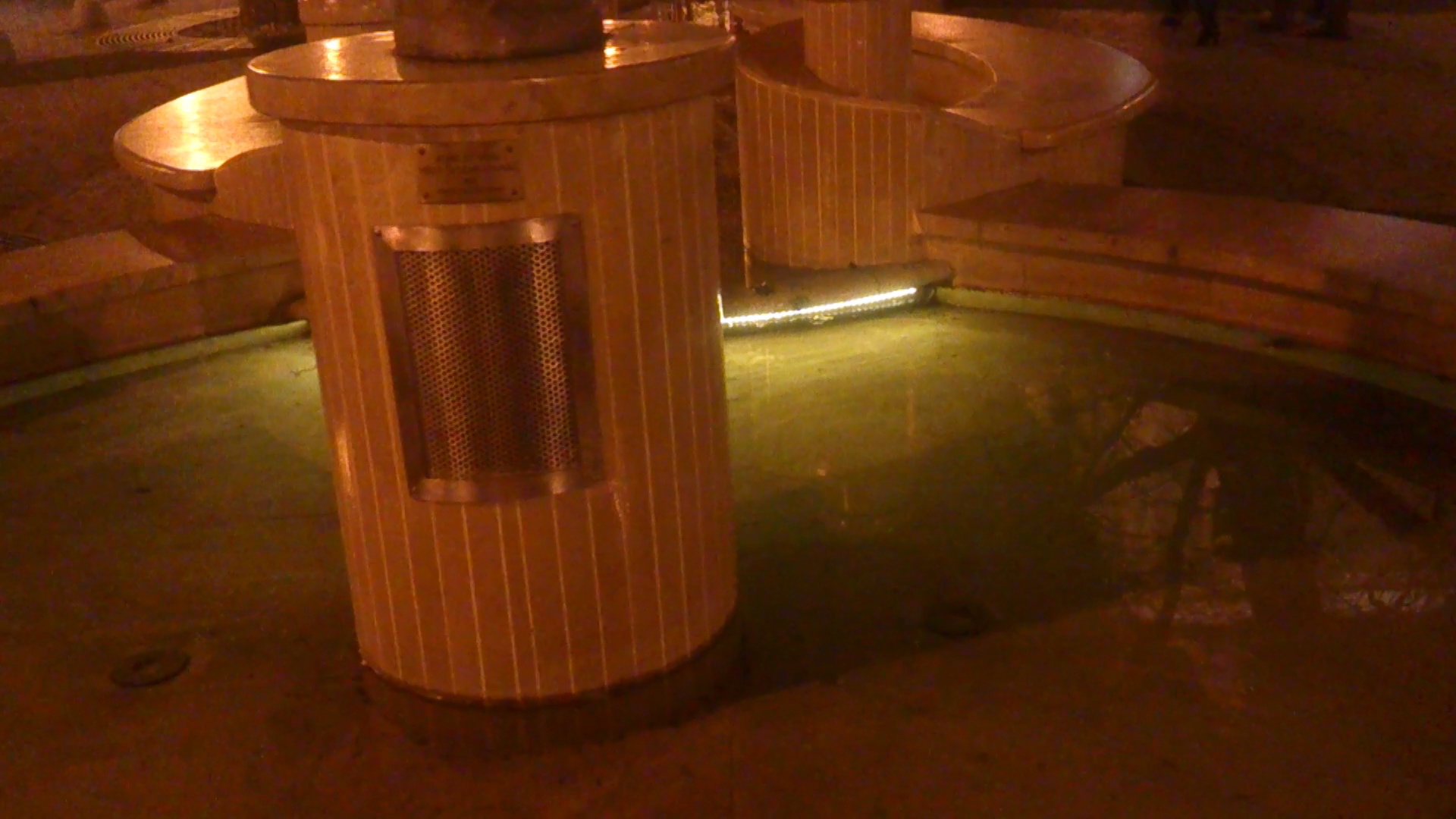 Sokan lettek figyelmesek az ismétlődő, már-már horrorfilmbe illő hangra a péntek esti koncert után a Szivárvány Kultúrpalota előtt. Mi is sokáig kerestük a hang forrását, míg végül az egyik szökőkútban találtuk meg. A 2010-ben átadott kút időnként zenét is játszik, valószínűleg most is ezzel próbálkozott.