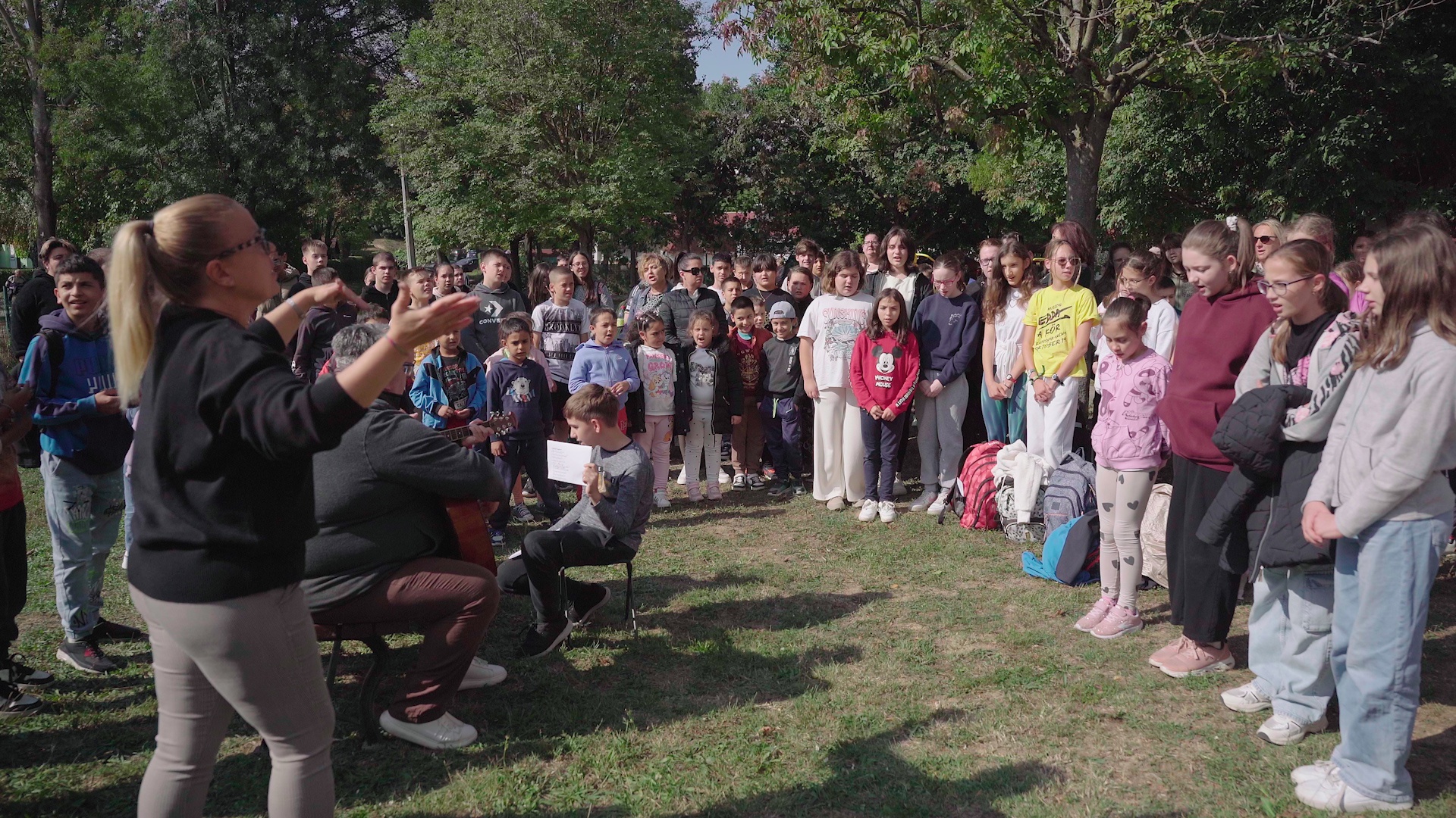 A Kinizsi Lakótelepi Tagiskola is csatlakozott a zene világnapi rendezvénysorozathoz, így szerda délután a Füredi úti játszótér mellett gyűlt össze az iskola diákserege.